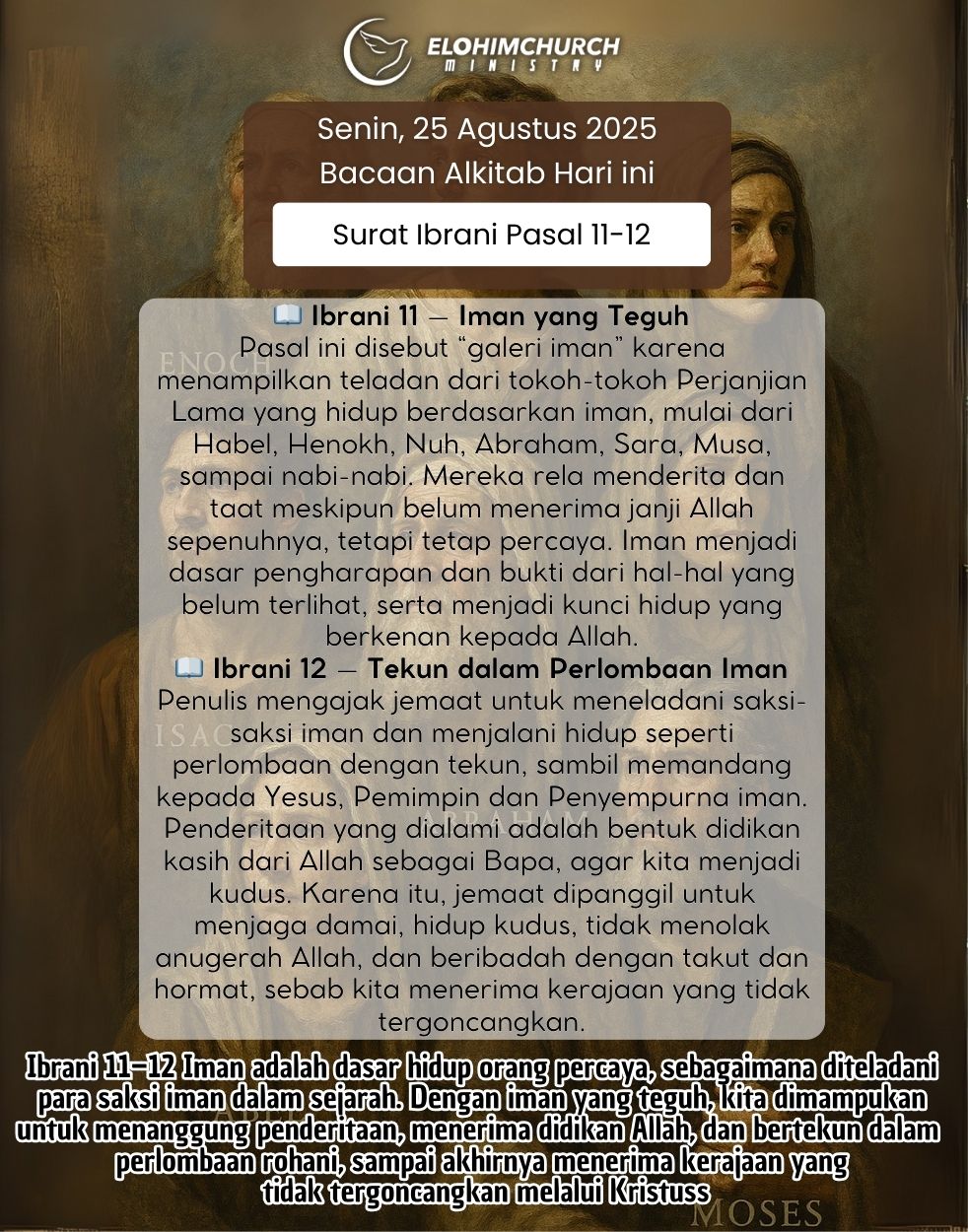 📖 Ibrani 11 – Iman yang Teguh Pasal ini disebut “galeri iman” karena menampilkan teladan dari tokoh-tokoh Perjanjian Lama yang ...