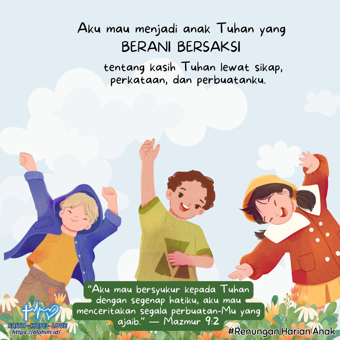 Renungan Harian Anak, Selasa 07 Oktober 2025 Bacaan: Mazmur 9:2 “Aku mau bersyukur kepada Tuhan dengan segenap hatiku, aku mau menceritakan segala perbuatan-Mu yang ajaib.” Shalom, adik-adik Elohim Kids yang manis! Bagaimana kabarnya hari ini? Kakak berharap semuanya sehat, semangat, dan tetap bersukacita ya! Hari ini kita mau belajar dari Firman Tuhan tentang satu hal …