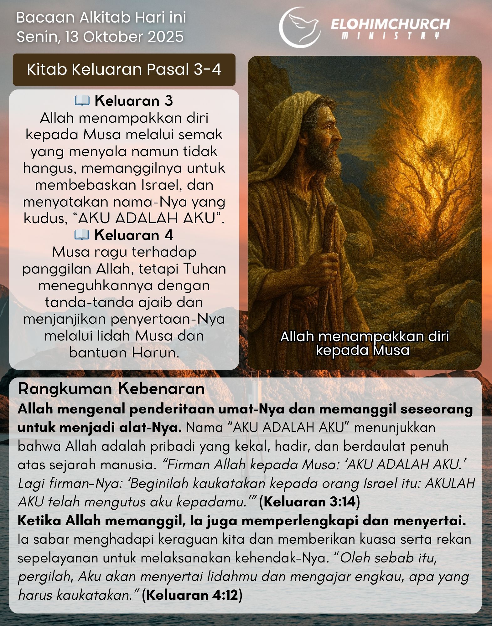 Bacaan Alkitab Senin, 13 Oktober 2025 ~ Kitab Keluaran Pasal 3-4