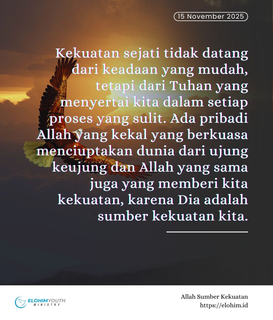 Renungan Harian Youth, Sabtu 15 November 2025 Yesaya 40:31, tetapi orang-orang yang menanti-nantikan TUHAN mendapat kekuatan baru: mereka seumpama rajawali ...