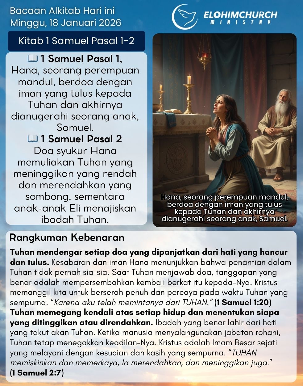 📖 1 Samuel Pasal 1, Hana, seorang perempuan mandul, berdoa dengan iman yang tulus kepada Tuhan dan akhirnya dianugerahi seorang ...