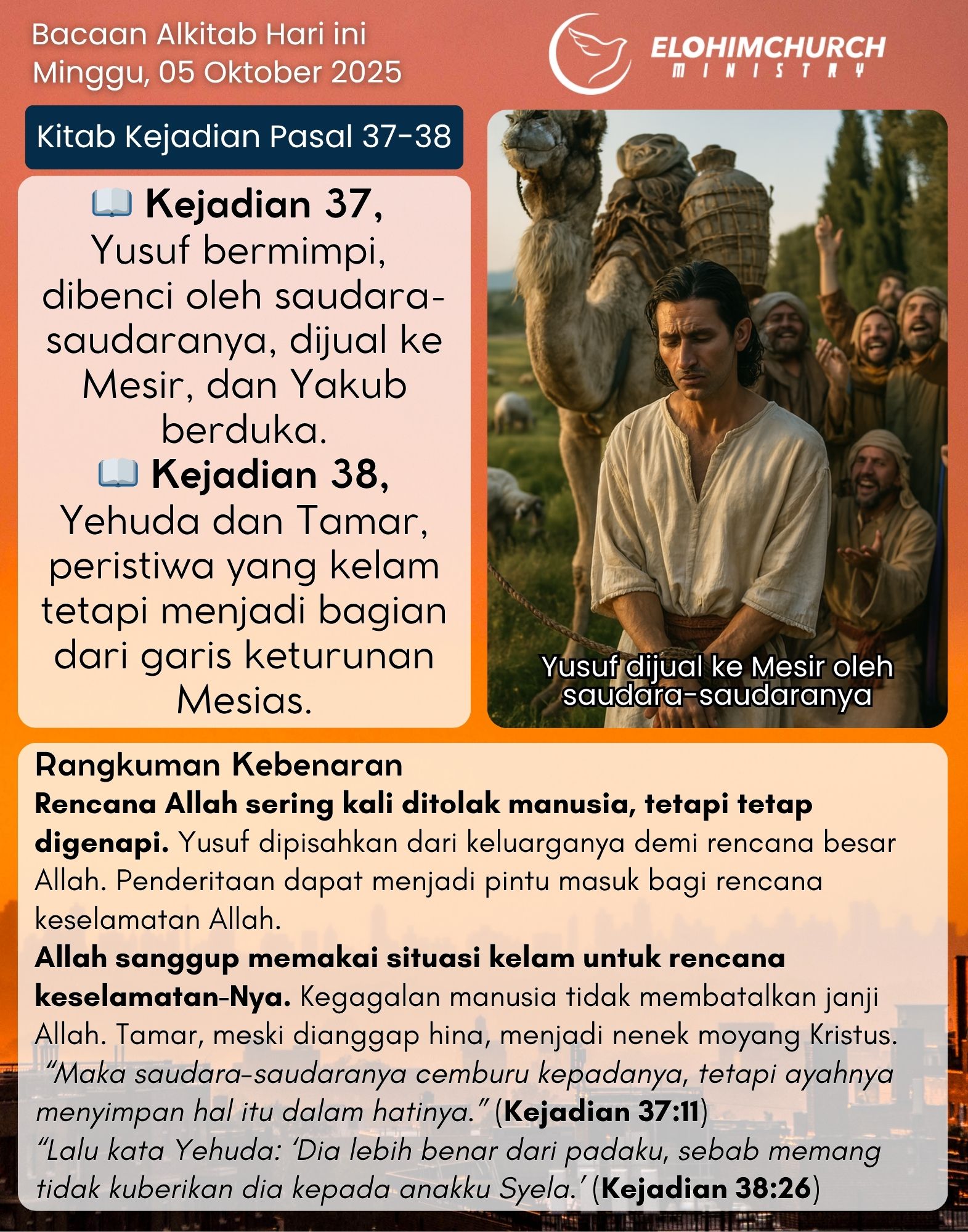 Bacaan Alkitab Minggu, 05 Oktober 2025 ~ Kitab Kejadian Pasal 37-38
