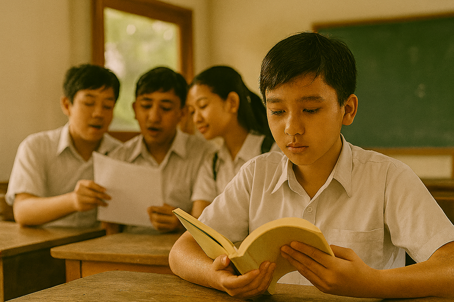 Kakak ingat sebuah cerita … Di kelas 6A, Tono dan Joni sedang bersiap untuk ulangan matematika. Tono dengan penuh semangat berkata kepada Joni, “Udah, nggak usah belajar! Aku punya bocoran soal ulangan Matematika besok. Kita tinggal hafalin jawabannya aja!” Tapi Joni menggeleng dan menjawab dengan tenang, “Aku nggak mau, Ton. Itu nggak jujur. Aku mau belajar aja seperti biasa.” Keesokan harinya, guru mereka ternyata mengganti soal dan angka di ulangan! Tono dan teman-temannya yang ikut berbuat curang jadi bingung karena jawabannya tidak sama. Sementara itu, Joni yang belajar dengan sungguh-sungguh bisa menjawab semua soal dengan baik. Nilai Joni pun tinggi, sedangkan Tono mendapat nilai rendah dan merasa malu.