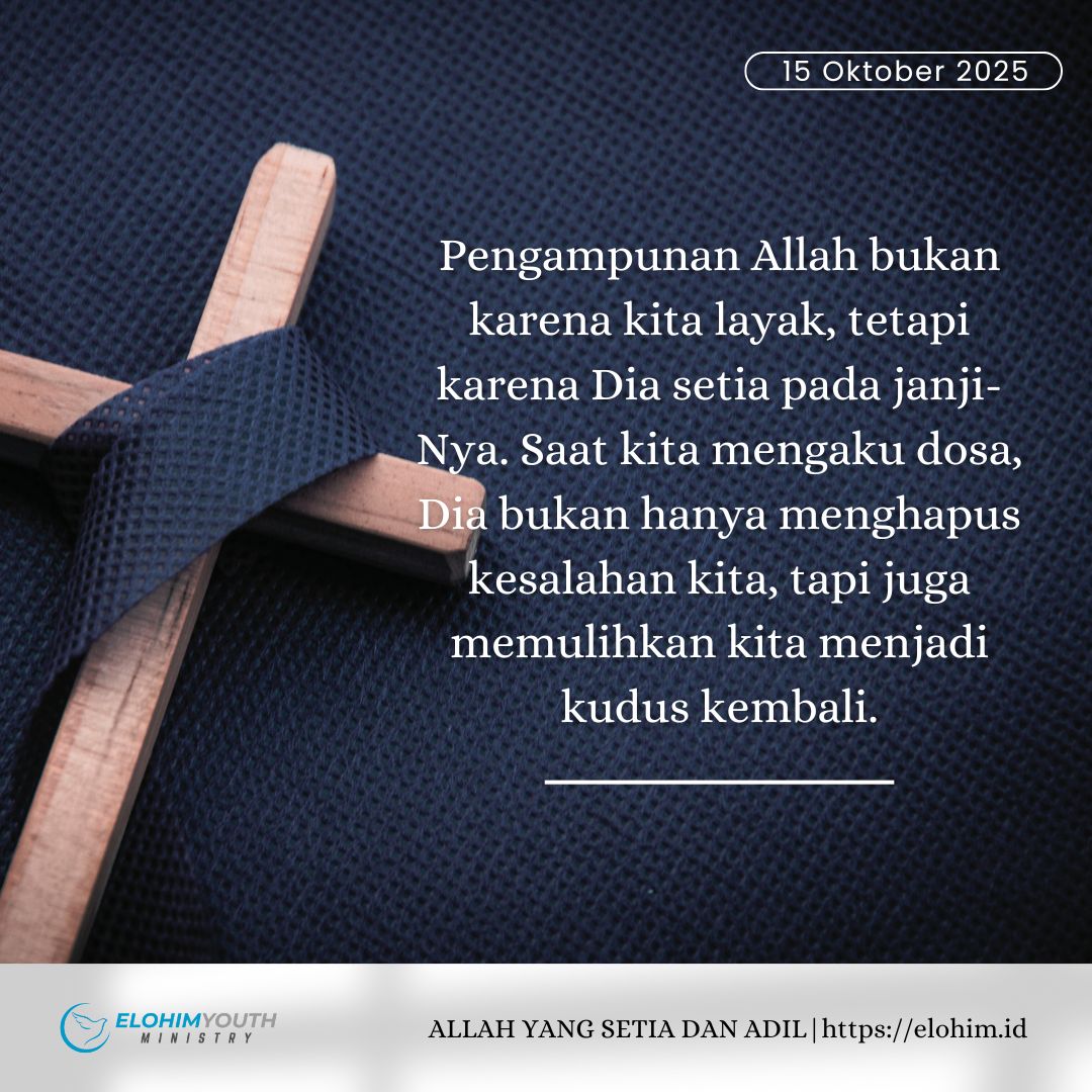 “Pengampunan Allah bukan karena kita layak, tetapi karena Dia setia pada janji-Nya. Saat kita mengaku dosa, Dia bukan hanya menghapus kesalahan kita, tapi juga memulihkan kita menjadi kudus kembali.”