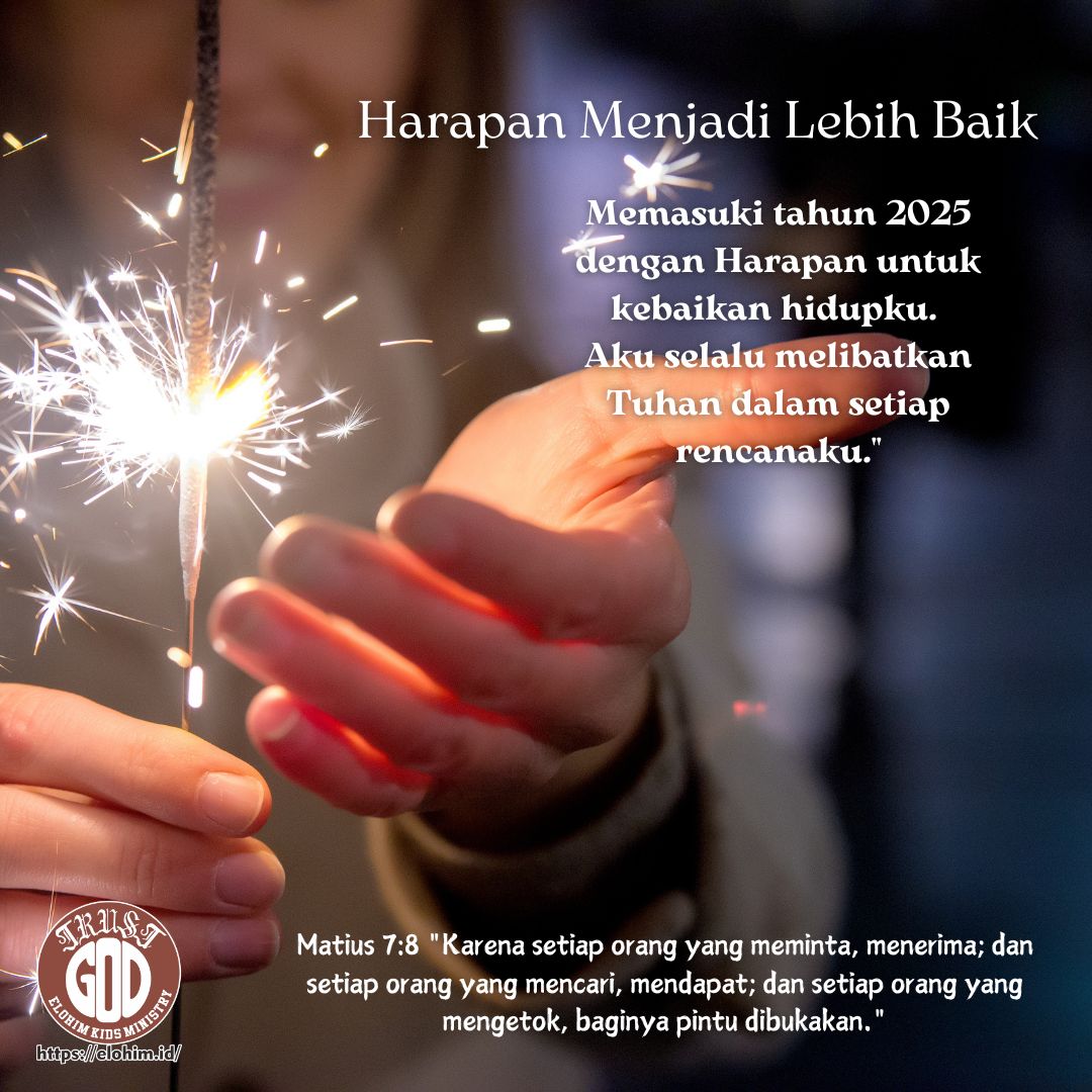 Renungan Harian Jumat, 27 Desember 2024 Syalom, adik-adik Elohim Kids! Bagaimana kabarnya hari ini? Kakak harap kalian semua sehat, penuh sukacita, dan semangat baru ya, karena Tuhan selalu beserta kita setiap waktu, dari kemarin, hari ini, besok, bahkan sampai selama-lamanya. Momen Menjelang Tahun Baru …Wah, sebentar lagi tahun baru tiba! Atau adik-adik sudah libur semuanya …