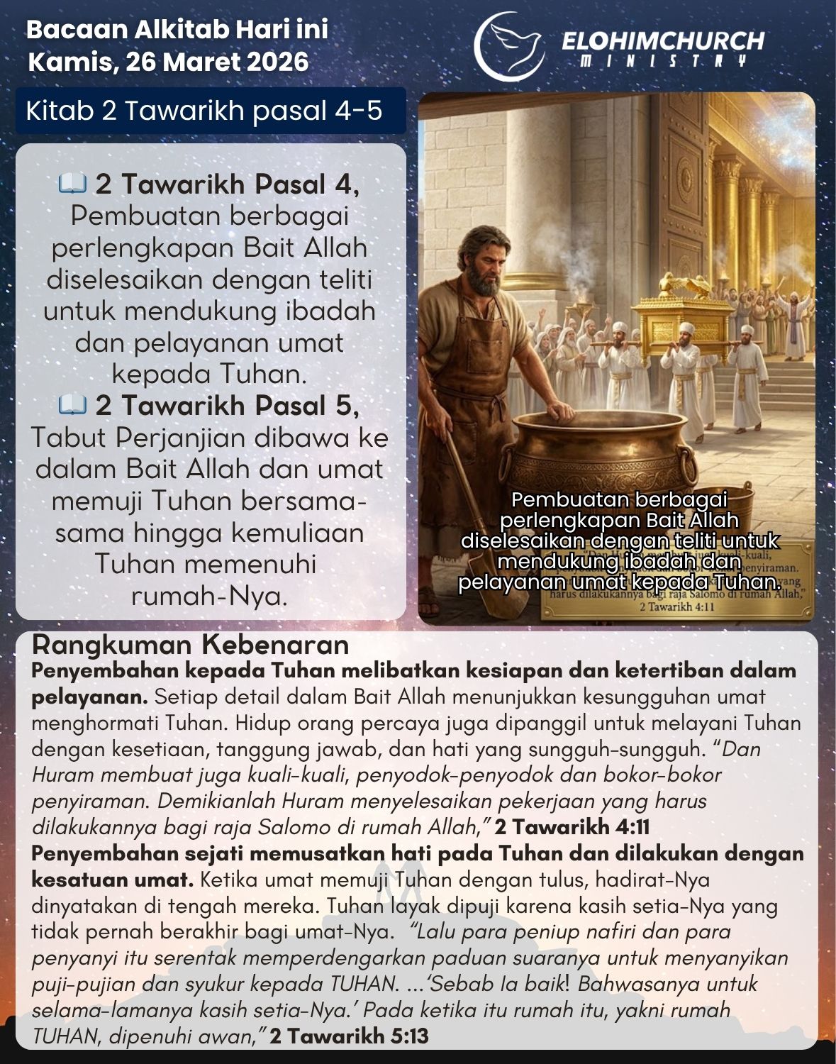 Maleakhi 1–2 menunjukkan bahwa Tuhan melihat hati di balik ibadah dan kehidupan kita. Dia menuntut kesetiaan, hormat, dan kebenaran—bukan hanya formalitas agama. Ibadah yang tulus dan hidup yang setia adalah cerminan kasih kita kepada Allah.