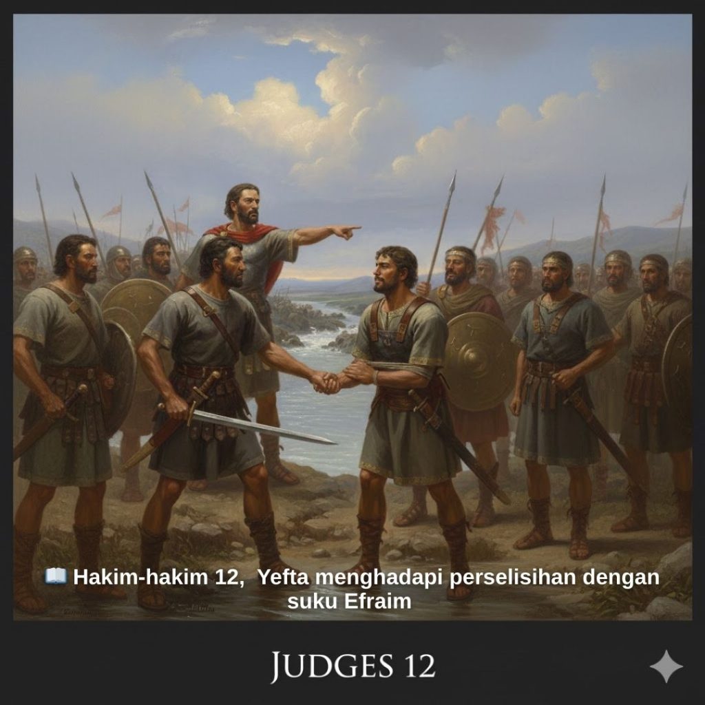 📖 Hakim-hakim 12, Yefta menghadapi perselisihan dengan suku Efraim dan meninggal setelah memerintah enam tahun, diikuti oleh tiga hakim berikutnya.