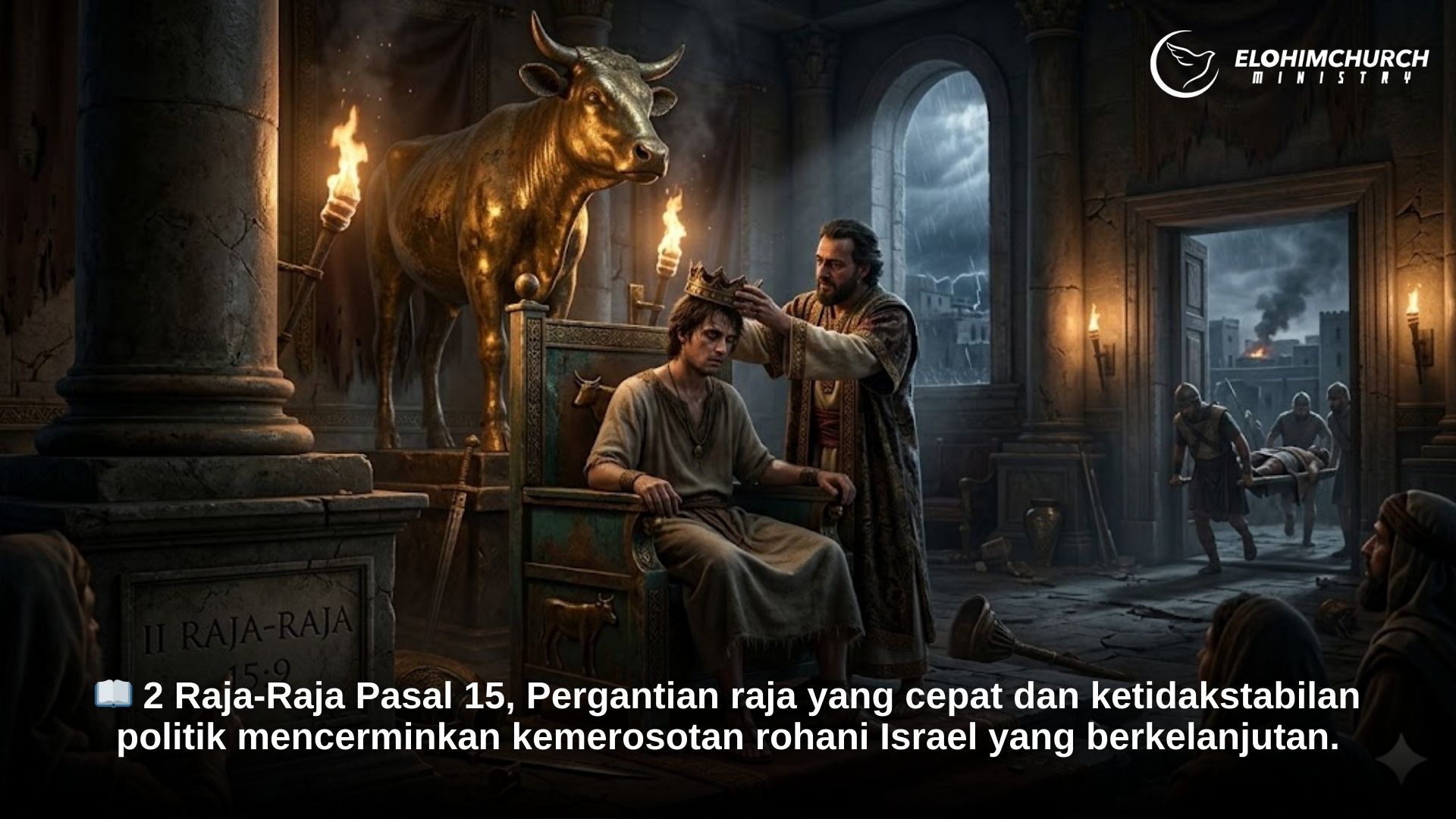π 2 Raja-Raja Pasal 15, Pergantian raja yang cepat dan ketidakstabilan politik mencerminkan kemerosotan rohani Israel yang berkelanjutan.