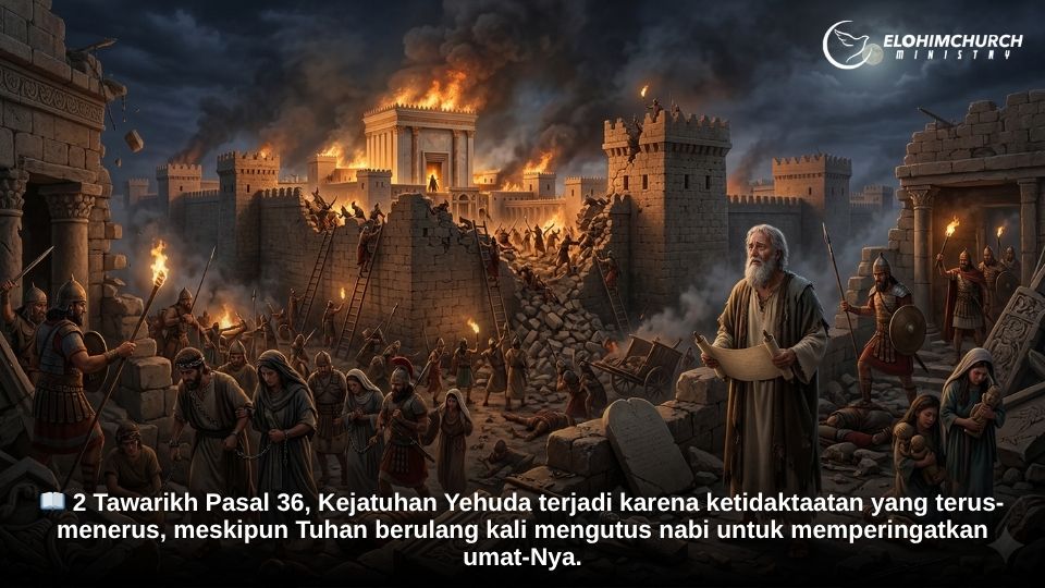 📖 2 Tawarikh Pasal 36,  Kejatuhan Yehuda terjadi karena ketidaktaatan yang terus-menerus, meskipun Tuhan berulang kali mengutus nabi untuk memperingatkan umat-Nya.