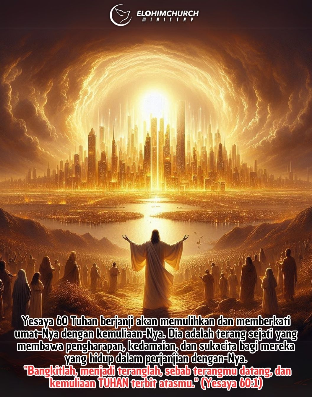 Tuhan berjanji akan memulihkan dan memberkati umat-Nya dengan kemuliaan-Nya. Dia adalah terang sejati yang membawa pengharapan, kedamaian, dan sukacita bagi mereka yang hidup dalam perjanjian dengan-Nya.