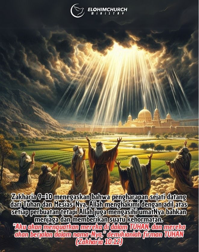 Zakharia 9–10 menegaskan bahwa pengharapan sejati datang dari Tuhan dan Mesias-Nya, Allah menghakimi dengan adil atas setiap perbuatan tetapi Allah juga mengasihi umatNya bahkan menjaga dan memberikan suatu kehormatan.