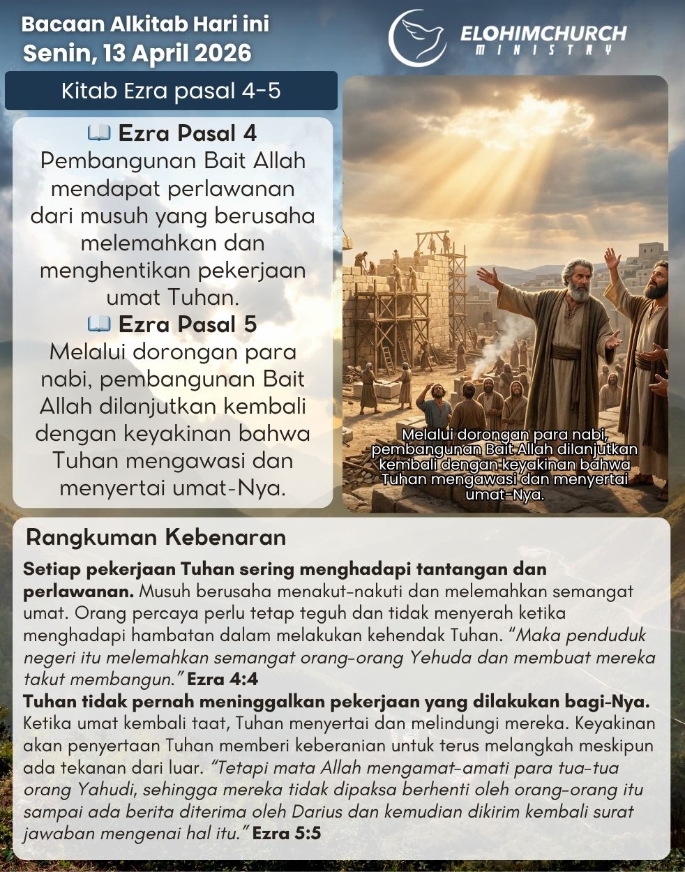 📖 Ezra Pasal 4, Pembangunan Bait Allah mendapat perlawanan dari musuh yang berusaha melemahkan dan menghentikan pekerjaan umat Tuhan.
