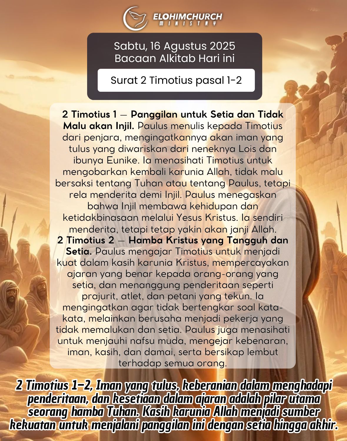 Bacaan Alkitab Surat 2 Timotius 1-2