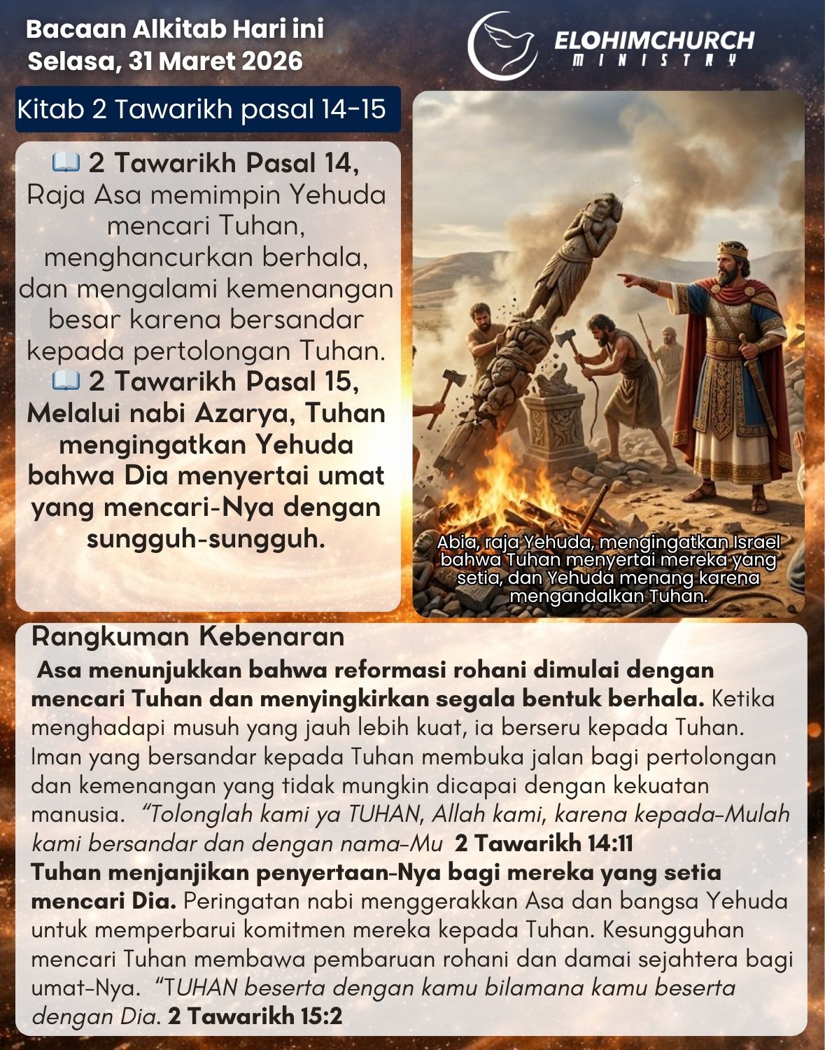 “Segala tulisan yang diilhamkan Allah memang bermanfaat untuk mengajar, untuk menyatakan kesalahan, untuk memperbaiki kelakuan, dan untuk mendidik orang dalam kebenaran.”(2 Timotius 3:16)