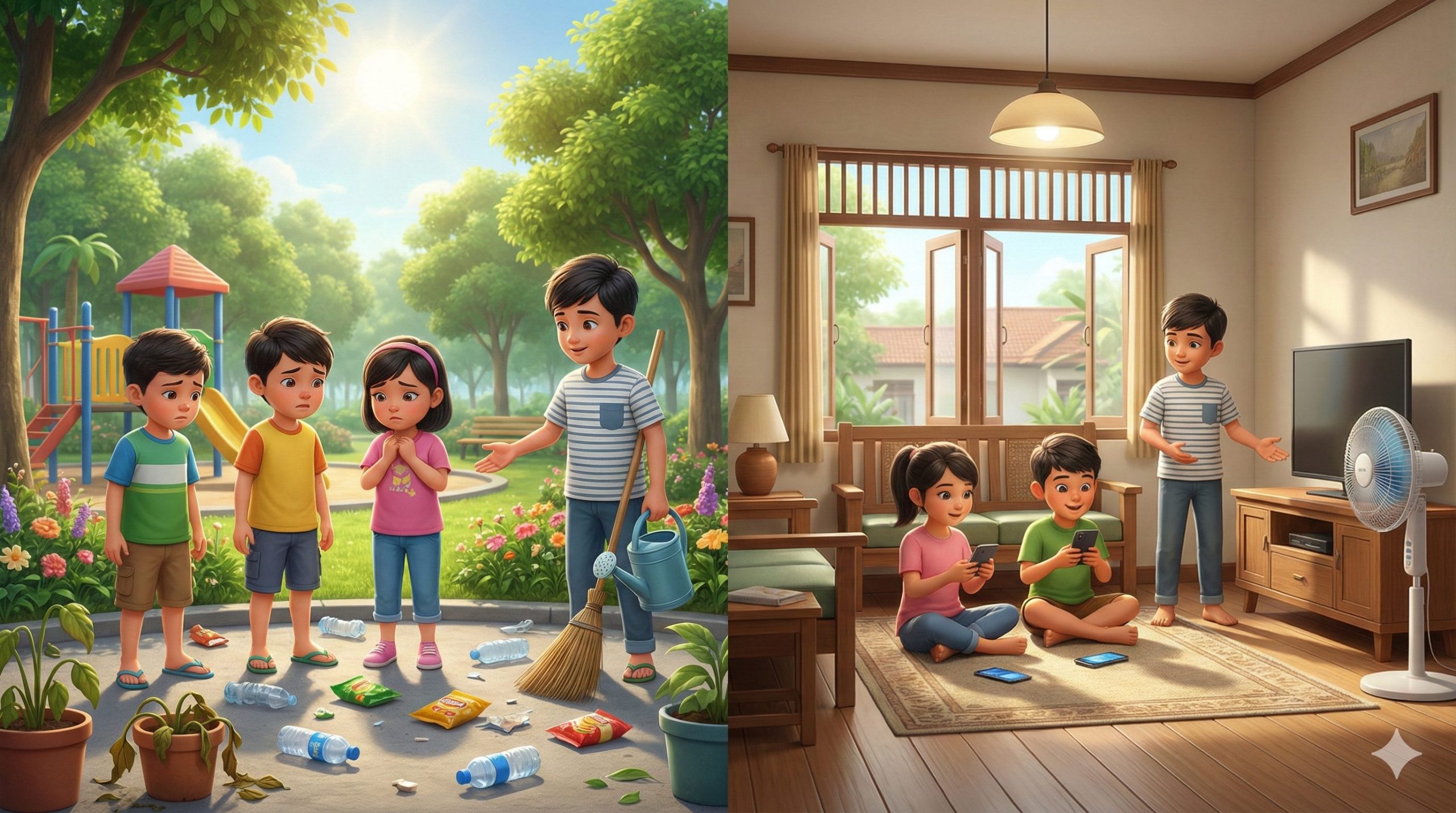 Adik-adik, bumi adalah rumah kita bersama yang Tuhan percayakan untuk dirawat. Mengasihi lingkungan berarti mengasihi Tuhan sebagai Penciptanya. Tuhan senang melihat anak-anak-Nya peduli: membuang sampah pada tempatnya, merawat tanaman, dan menggunakan energi dengan bijak. Jika kita merusak bumi, sama saja kita tidak menghargai hadiah Tuhan. Tetapi jika kita menjaganya, Tuhan dipermuliakan melalui perbuatan kita.