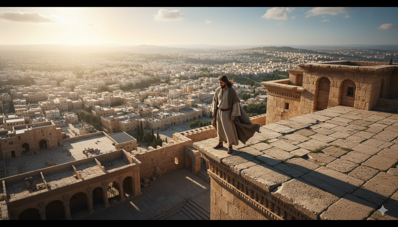 Adik-adik, dalam kisah pencobaan di padang gurun, Yesus tidak hanya dicobai satu kali. Setelah gagal menggoda Yesus untuk mengubah batu menjadi roti, iblis mencoba cara lain. Ia membawa Yesus ke puncak Bait Allah yang sangat tinggi, dan berkata, “Kalau Engkau Anak Allah, jatuhkanlah diri-Mu ke bawah! Bukankah tertulis bahwa malaikat-malaikat akan menolong-Mu?”