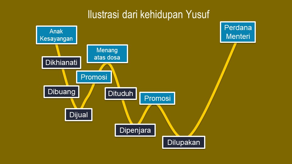 Kisah hidup Yusuf dalam Kejadian memberikan gambaran nyata tentang bagaimana Allah bekerja melalui proses panjang yang tampaknya penuh tragedi. Yusuf memulai hidupnya sebagai anak kesayangan ayahnya, tetapi kasih itu justru menimbulkan kecemburuan dan kebencian saudara-saudaranya. Ia dikhianati oleh orang-orang terdekatnya, dibuang ke dalam sumur, lalu dijual sebagai budak ke negeri asing. Ketika mulai bangkit dan dipercaya dalam rumah Potifar, ia kembali menghadapi kemalangan—dituduh melakukan kejahatan yang tidak ia lakukan. Fitnah itu membuatnya dipenjara, dan di sana ia kembali mengalami kepahitan ketika orang yang ditolongnya justru melupakan dirinya. Namun seluruh proses tersebut bukanlah deretan kesialan, melainkan tahap demi tahap yang Allah gunakan untuk membentuk karakter Yusuf dan menempatkannya pada waktu yang tepat. Pada akhirnya, Yusuf dipromosikan menjadi orang kedua setelah Firaun—posisi strategis yang membuatnya menjadi alat penyelamatan bagi banyak orang, termasuk keluarganya sendiri. Dari awal hingga akhir, kita melihat bagaimana tangan Allah menenun peristiwa-peristiwa yang tampaknya buruk menjadi rencana mulia yang jauh melampaui pemahaman manusia.Allah memakai setiap lapisan penderitaan sebagai proses pembentukan karakter, hingga akhirnya rencana-Nya digenapi.