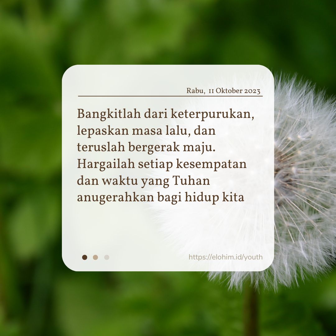 Pastikan bahwa kita pun rindu untuk dilawat Roh Kudus dan masa muda kita menjadi semakin bermakna karena kita terus diubahkan dalam kebenaran Allah dari hari ke hari.