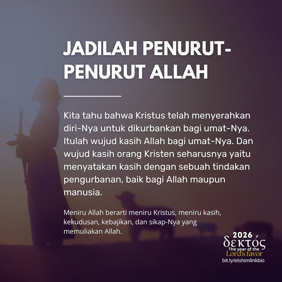 Sebagai anak-anak Tuhan, kita dipanggil untuk hidup sebagai penurut-penurut Allah. Kita perlu bertanya pada diri sendiri: siapa yang sedang kita tiru hari ini? Apakah karakter, perkataan, dan sikap kita semakin menyerupai Kristus, atau justru lebih dipengaruhi oleh lingkungan dan tren dunia? Kita semua sedang dimuridkan oleh sesuatu—oleh media sosial, pergaulan, atau oleh firman Tuhan. Karena itu, mari dengan sadar memilih untuk meneladani Kristus, belajar mengasihi, mengampuni, dan hidup dalam kekudusan. Saat kita mengingat bahwa kita adalah anak-anak yang dikasihi Allah, kita akan terdorong untuk mencerminkan kasih dan karakter-Nya dalam setiap aspek kehidupan kita.