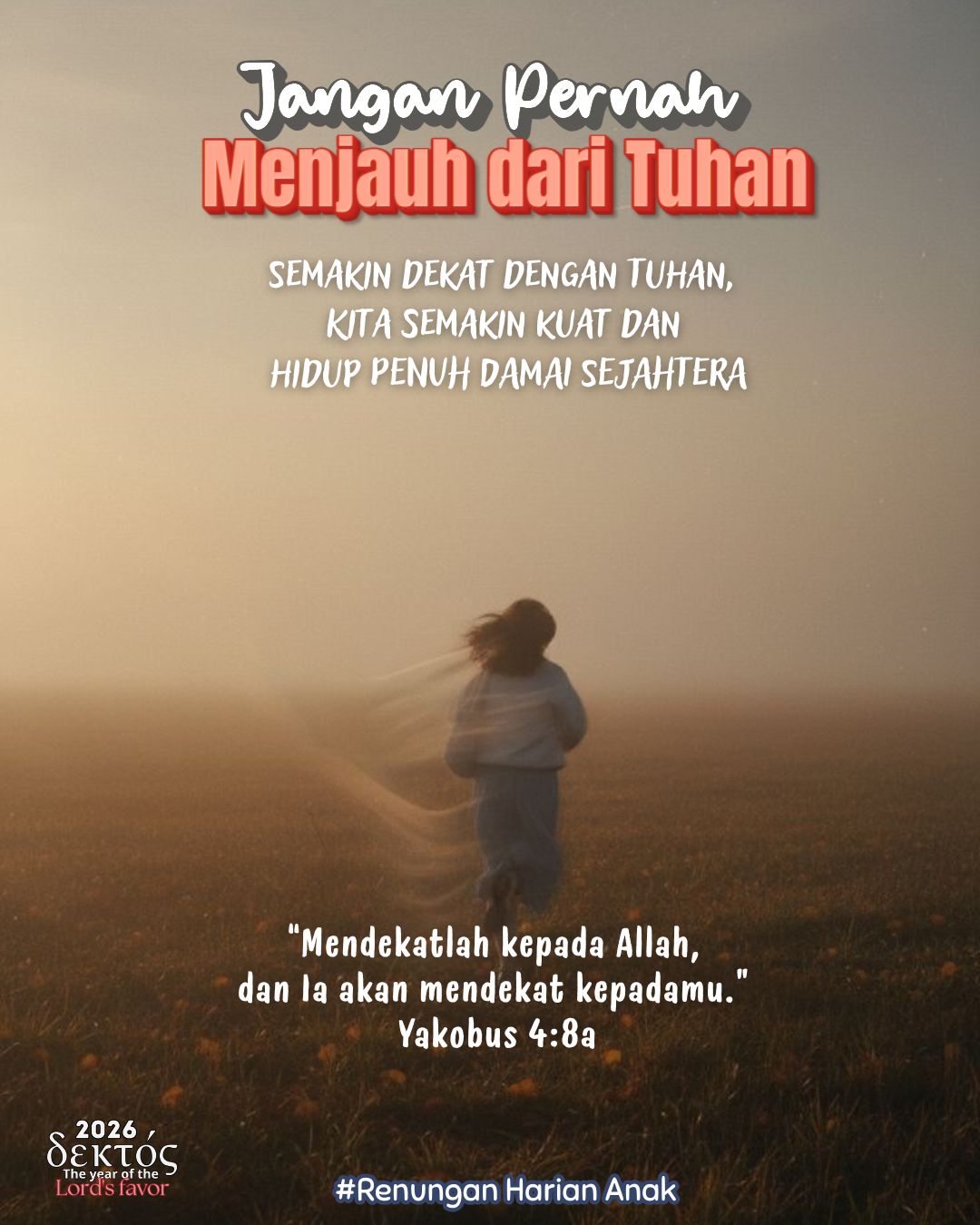 Adik-adik, menjauh dari Tuhan hanya akan membuat hidup kita kosong dan penuh masalah. Tetapi ketika kita dekat dengan Tuhan, kita akan merasakan damai, sukacita, dan pertolongan-Nya. Mari kita belajar untuk tetap setia dan tidak menjauh dari Tuhan.
