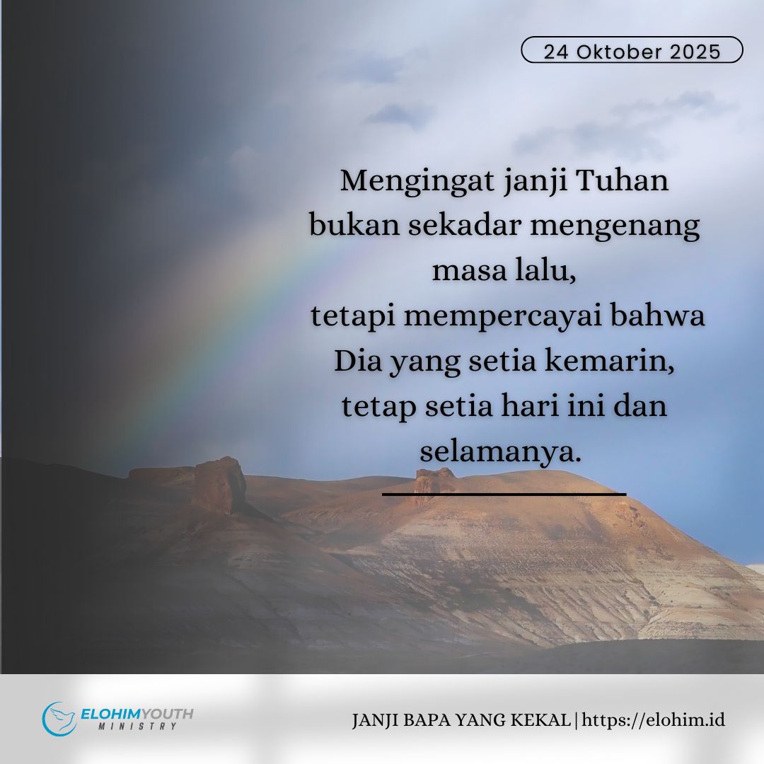 Dunia bisa berubah, manusia bisa ingkar, tetapi janji Allah kekal selamanya. Dengan mengingat janji Bapa, kita diajak untuk tetap berharap meski keadaan tampak mustahil. Janji Tuhan meneguhkan bahwa Ia tidak pernah meninggalkan umat-Nya — dari zaman Abraham, hingga hari ini, dan sampai selama-lamanya.