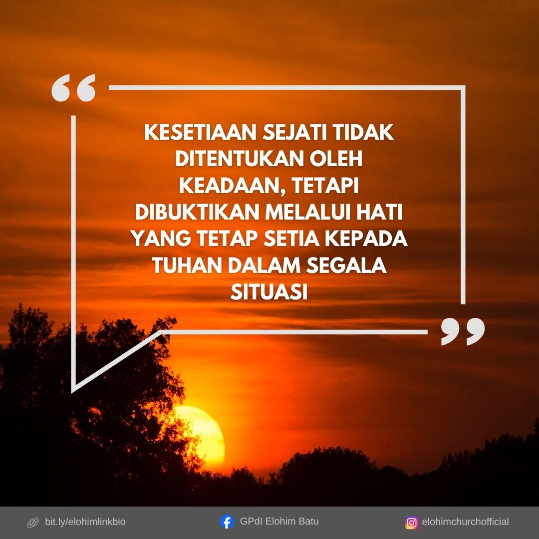 Kesetiaan sejati tidak ditentukan oleh keadaan, tetapi dibuktikan melalui hati yang tetap setia kepada Tuhan dalam segala situasi.