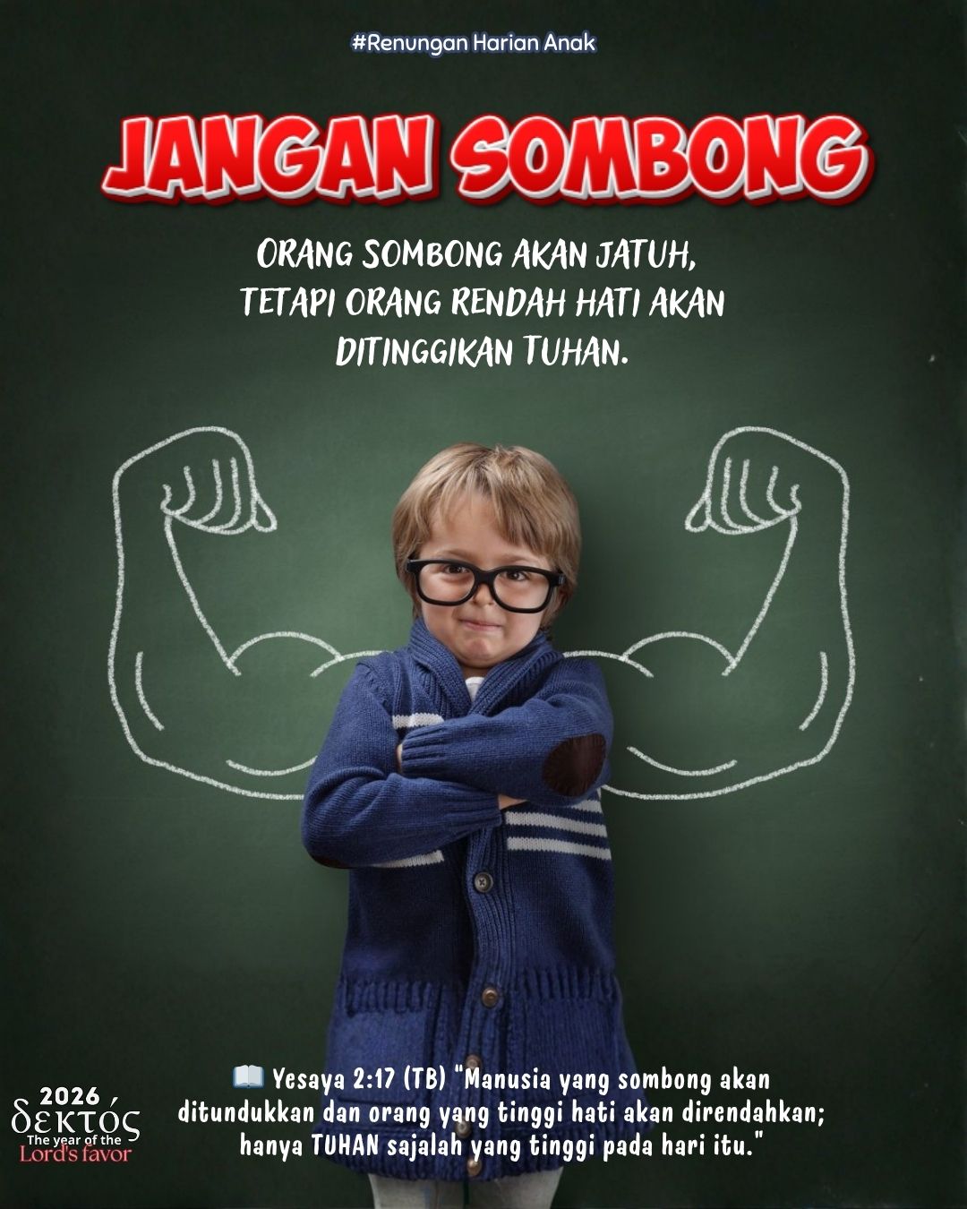 Tuhan ingin kita menjadi anak yang rendah hati, bukan sombong. Kalau kita pintar, kuat, atau berhasil, ingat bahwa itu semua karena Tuhan.