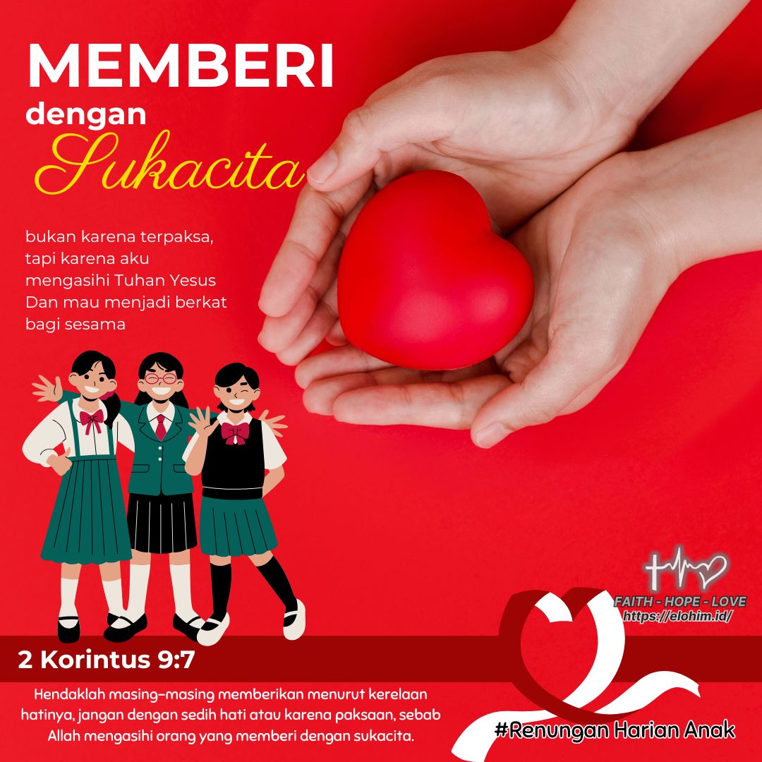 Jadi, mulai hari ini, yuk kita belajar memberi dengan hati yang senang dan penuh kasih, karena Allah mengasihi orang yang memberi dengan sukacita!