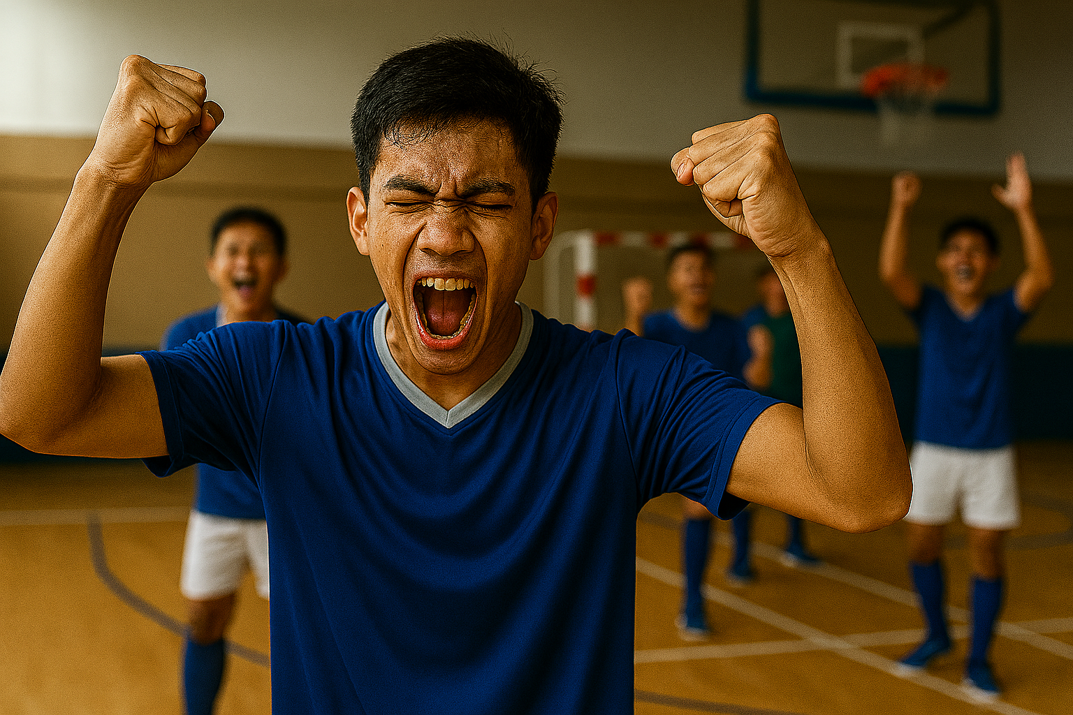 Adi adalah pemain futsal di sekolahnya. Ia punya sahabat bernama Dino. Pada pertandingan antar sekolah, Dino dilanggar dengan keras hingga cedera dan harus keluar dari lapangan. Adi merasa sangat marah. Ia ingin membalas lawan yang mencederai sahabatnya. Saat istirahat babak pertama, pelatih menghampiri Adi. “Adi, kamu harus menguasai dirimu. Kalau kamu terus marah, permainanmu akan berantakan, dan itu merugikan tim. Fokuslah pada permainan, jangan pada emosimu,” kata pelatih tegas. Adi menunduk dan merenungkan perkataan pelatih. Ia memilih mendengarkan nasihat itu. Di babak kedua, Adi bermain lebih tenang dan akhirnya berhasil mencetak gol penentu kemenangan. Seluruh tim bersorak gembira, tapi kemenangan terbesar adalah ketika Adi bisa menguasai dirinya sendiri.