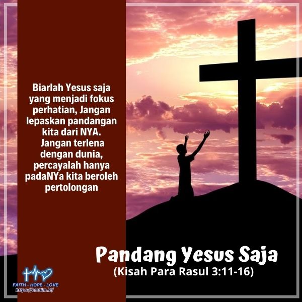 Bapak ibu sekalian jangan pernah lepaskan pandangan kita dari Kristus, jangan terlena dengan dunia ini, percayalah bahwa hanya kepadaNYa kita beroleh pertolongan