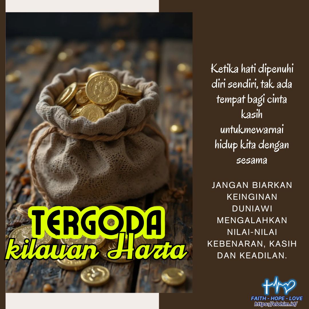Ingatlah perkataan Tuhan Yesus dalam Matius 6 : 20 – 21 “ Tetapi kumpulkanlah bagimu harta di surga, di surga ngengat dan karat tidak merusaknya dan pencuri tidak membongkar serta mencurinya, karena di mana hartamu berada, disitu juga hatimu berada “.