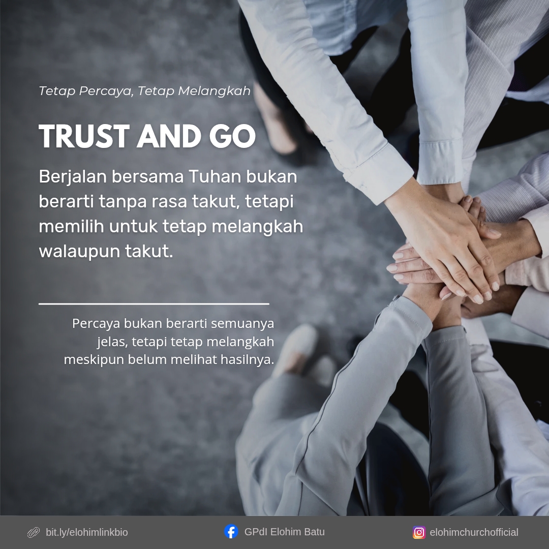 Hidup dalam “Trust and Go” berarti tetap percaya kepada Tuhan dalam segala keadaan, dan tetap melangkah bersama-Nya, sekalipun kita belum melihat hasilnya.