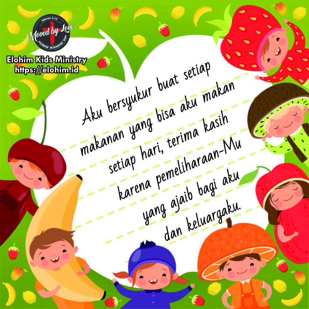 Siapa yang sudah sarapan pagi ini? Siapa yang sebelum makan pasti berdoa terlebih dahulu? Wah doa sebelum makan itu bukan Cuma kebiasaan ya adik-adik tetapi waktu untuk kita bersyukur kepada Tuhan karena sudah memberikan makanan buat kita semua. Kita bisa makan semua karena berkat Tuhan melalui orang tua kita.