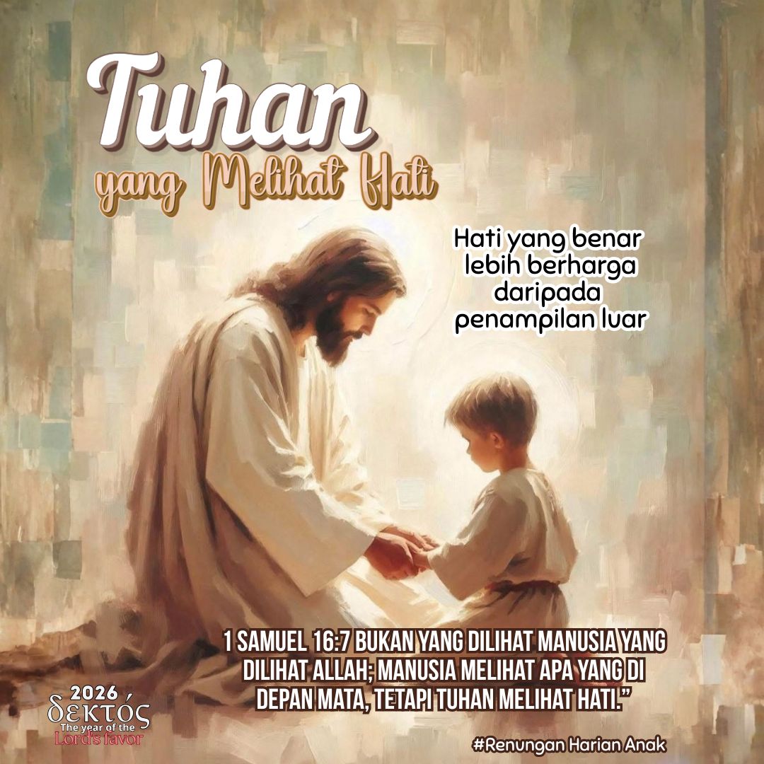 Adik-adik, Tuhan juga melihat hati kita. Apakah kita jujur? Apakah kita taat? Apakah kita mengasihi Tuhan? Itu yang lebih penting daripada terlihat hebat di luar. Tuhan mau kita punya hati yang baik dan benar.