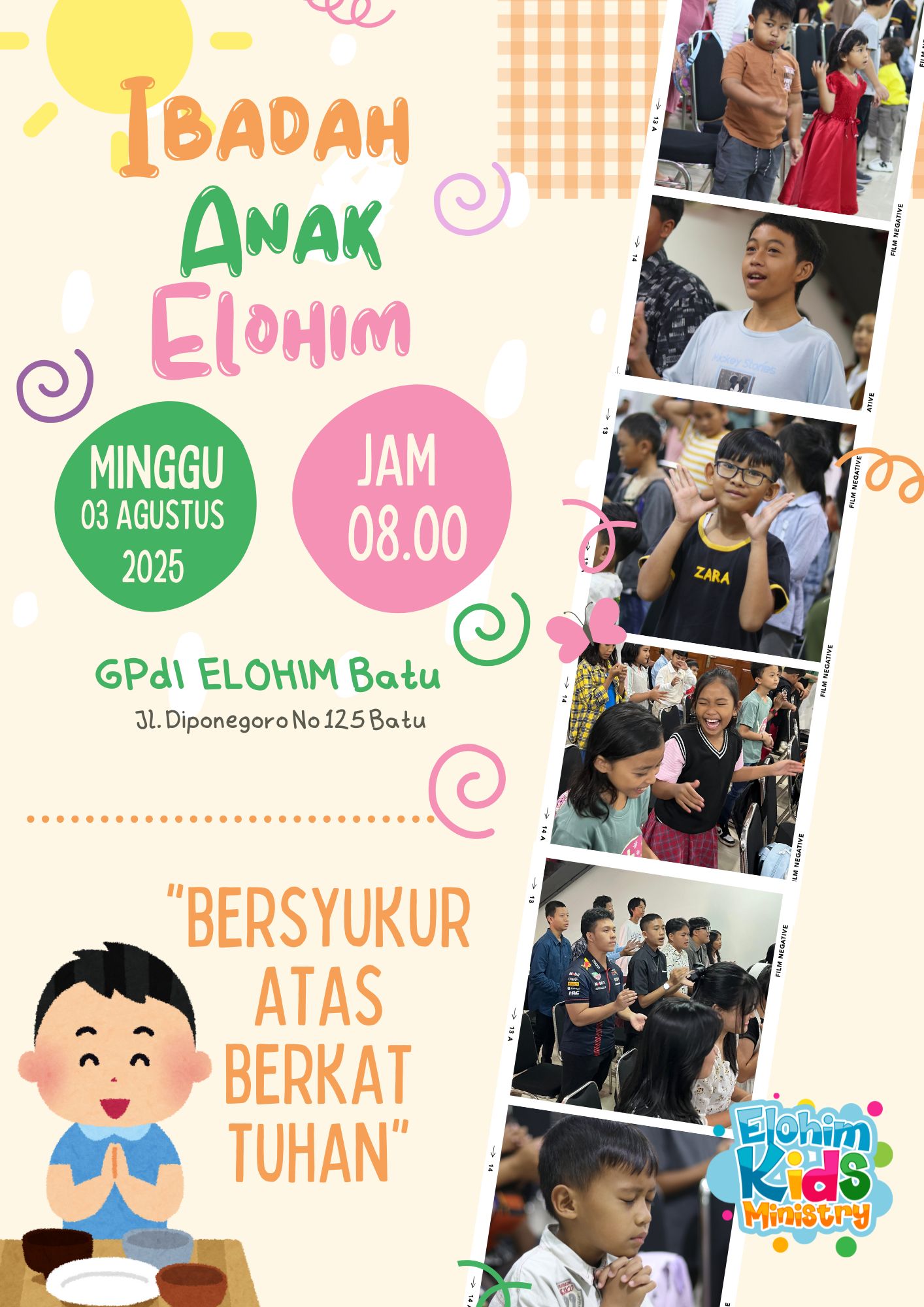 Jangan lupa adik-adik semuanya, untuk mengikuti ibadah Anak Elohim di Gedung Gereja ya besok hari minggu jam 8.00 dengan tema